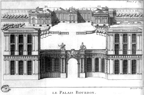 Le Palais Bourbon, qui abrite l’Assemblée Nationale a été bâti à l'initiative de Louise Françoise de Bourbon, fille légitimée de Louis XIV et de Madame de Montespan. L'architecte Giardini en commença la construction du Palais Bourbon en 1722, Pierre Cailleteau dit Lassurance, continua les travaux. Jean Aubert (1680-1741) et Jacques Gabriel (1667-1742) le terminèrent en 1728.