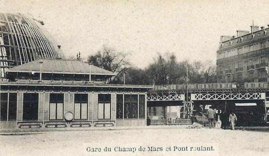 La première gare construite pour l’exposition universelle de 1867 a été détruite après sa fermeture, ainsi que la jonction vers la Petite Ceinture La seconde gare construite pour l’exposition universelle de 1878 a été réalisée par l’architecte, Juste Lisch (1828-1910). La jonction avec la Petite Ceinture est réalisée à titre définitif. En 1897 il est décidé crée deux nouvelles lignes reliant le Champ de Mars. Une en bord de Seine la ligne des Moulineaux , vers la gare des Invalides. Une autre la ligne Champ de Mars - Courcelles qui se terminait sur la Petite Ceinture après avoir traversé la Seine au pont de Rouelle. La gare terminus de Lisch n’étant plus adaptée elle est démontée et reconstruite à Asnières-sur-Seine. La troisième gare construite pour l’exposition universelle de 1900 est réalisée en tranchée sur la ligne des Invalides. Une gare spéciale et provisoire est également construite comportant 20 quais. La gare de marchandises est supprimée au milieu du XXe siècle
