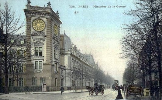 Le Ministère de la Défense anciennement Ministère de la guerre était situé au 231du boulevard Saint Germain non loin de la Chambre des députés . Ce bâtiment a été construit en 1876-1877 par l'architecte Louis-Jules Bouchot. Il masque l''hôtel de Brienne dont l'entrée se fait par la rue Saint Dominique qui abrite les bureaux du ministre.