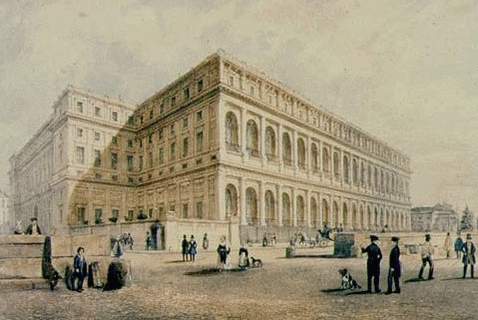 Le Palais d'Orsay était situé quai Anatole France en bordure de la Seine. Edifié, entre 1810 et 1838 à l'initiative de Napoléon 1er par les architectes Jean-Charles Bonnard et Jacques Lacornée Il a été détruit sous la Commune de Paris en 1871. A son emplacement a été construit la gare d'Orsay.