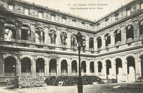 Initialement destiné à accueillir le Ministère des Affaires Étrangères, le Palais d'Orsay est affecté à on achèvement au Conseil d'Etat, auquel est adjoint plus tard la Cour des comptes. Incendié sous la Commune de Paris dans la nuit du 23 au 24 mai 1871. Le conseil d'Etat est alors transféré dans les bâtiments du Palais Royal dans le 1e arr. L' ancien emplacement est racheté par la Compagnie Paris-Orléans, qui y érige sa nouvelle gare terminus à partie de 1898, la gare d'Orsay qui est devenu depuis 1986 le musée d'Orsay .