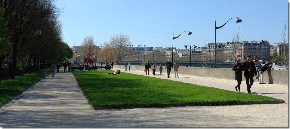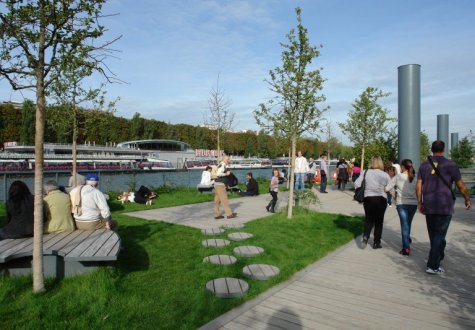 Sur les quais bas de la Seine a été aménagé, en 2013, un jardin flottant composé de cinq îles amarrés à de grands pieux d'acier . Le buste de Habib Bourguiba est l’œuvre du sculpteur turc Macunluoglu. L'installation du buste n'a eu lieu qu'en 2013, en raison de l'opposition de Ben Ali durant sa présidence.