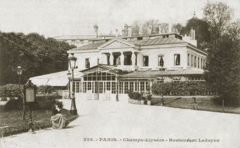 Le restaurant Ledoyen est l'un des plus anciens établissements des Champs-Élysées. C'était au départ qu'une modeste auberge fondée en 1798 par Antoine-Nicolas Doyen dit aussi Ledoyen à l'enseigne" Au Dauphin" fréquentée, selon la légende, par Barras, Robespierre et Bonaparte. A la Belle Epoque, Ledoyen est le restaurant préféré du Tout-Paris. Aujourd'hui encore, il demeure un restaurant exceptionnel près duquel murmure la fontaine d'Hittorff.
