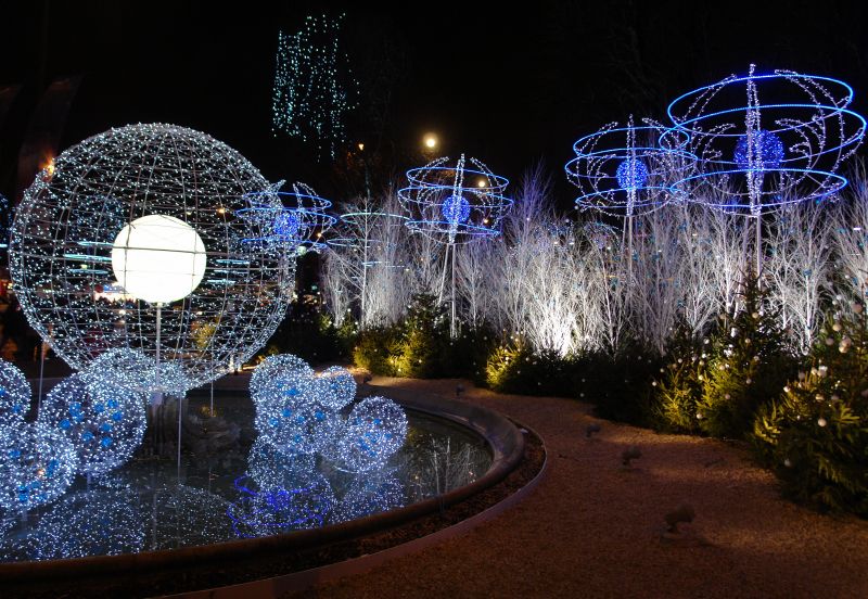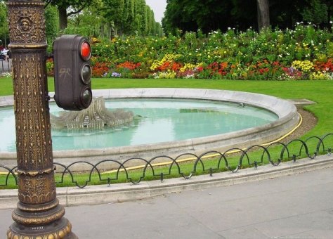 Le Rond Point des Champs Elysées - Marcel Dassault d'un diamètre de 164 mètres, se trouve au tiers de l'avenue des Champs Elysées en bordure des jardins des Champs Elysées .D. La place a été imaginée et réalisée en 1670 par André Le Nôtre sur le parcours de l’avenue des Tuileries - actuellement l’avenue des Champs-Elysées. Les six fontaines ont été réhabilitées et transformées par les designers Ronan et Erwan Bouroullec en 2018 .La restauration des bassins, prise en charge par le Qatar.