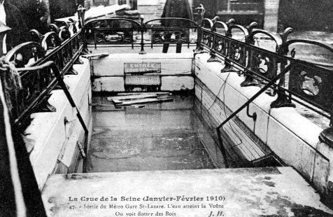 Lors des inondations de janvier 1910, les eaux ont atteint la gare Saint Lazare non par les rues, mais par les égouts et les tunnels du métro l'eau a suivi un ancien bras souterrain de la Seine.