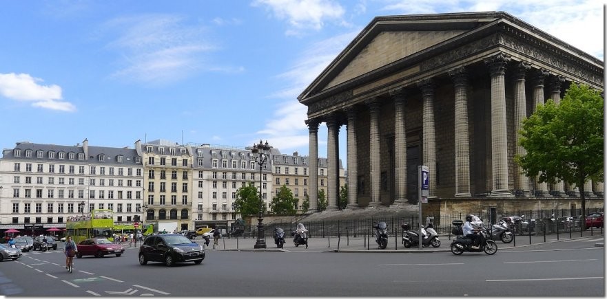 La place de la Madeleine a été formée en 1815 sur des terrains dépendant de l'ancienne église de la Madeleine, une nouvelle église de la Madeleine a été construite sous l'impulsion de Napoléon. A cet endroit finissent les Grands Boulevards ( boulevard de la Madeleine, boulevard des Capucines, boulevard des italiens, boulevard Montmartre etc.. ) qui forment un arc de cercle sur la rive droite qui commencent place de la Bastille