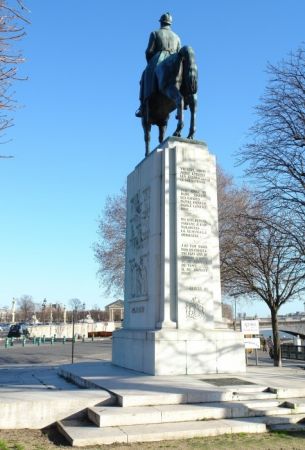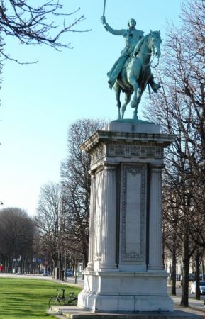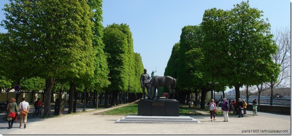 Le cours la Reine est coupé en son milieu par un terre plein où se dressent des statues équestres de Simon Bolivar de Emmanuel Frémiet en 1933, le Roi Albert de Belgique de Armand Martial (1884-1960) en 1938 et Lafayette (par W. Bartlett) cette dernière statue se trouvait dans un des squares de la cour Napoléon du Louvre à l'emplacement actuel de la Pyramide. Depuis 1980, la statue équestre de Simon José Antonio Bolivar y Palacios (1783-1832), libérateur des pays andins, œuvre d'Emmanuel Frémiet (1824-1910), installée auparavant place de la Porte Champerret, a été dressée au débouché du pont Alexandre III, soit au centre de la perspective plantée qui borde le fleuve. Monté sur un cheval à l'arrêt, la sculpture du général en costume d'apparat a été fondue par Barbedienne. Le piédestal mentionne les pays donateurs : "Les Républiques bolivariennes des Venezuela, Colombie, Equateur, Pérou, Bolivie et Panama à la Ville de Paris ". En juin 2011 a été inauguré un monument à la mémoire des soldats et officiers du corps expéditionnaire russe qui ont combattu aux côtés des troupes françaises lors de la guerre. Il représente un jeune officier russe, décoré de croix de Saint-Georges , en uniforme de l’époque, un casque français avec un aigle bicéphale de l’empire dans une main, et sa monture. La maison François 1er se trouvait à l'angle du Cours la Reine et de la rue Bayard, elle a été démontée et reconstruite pierre par pierre en 1957 à Moret-sur-Loing (Seine et Marne), lieux où elle avait construite primitivement. Le monument à Armand Silvestre (1837-1901) réalisé par Antonin Mercié a été inauguré en 1906 sur le cours la Reine, de nous jours il ni s'y trouve plus. Il aurait été transféré à Toulouse (à vérifier) La galerie des machine a été construite a été construite sur le cours la raine pour l'exposition Universelle de 1855. Ce bâtiment à la Concorde à l'Alma se composait d'une galerie de 1200 mètres de long et 17 mètres de haut avec une mezzanine à mi-niveau.