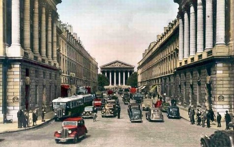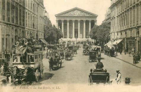 La rue Royale commence place de la Concorde pour se terminer en face de l'église de la Madeleine. Cette voie dénommée à l'origine rue Royale des Tuileries a été imaginée par l'architecte Ange-Jacques Gabriel concepteur des hôtels de la place de la Concorde . Les premiers bâtiments de la rue sont dues à Louis Le Tellier. La rue Royale a changé de nom a la fin du XVIII e siècle: rue de la Révolution, rue Royale Saint-Honoré et rue de la Concorde