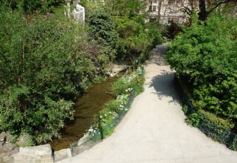 Le jardin de la Nouvelle France (anciennement vallée Suisse) situé place du Canada en bordure de la Seine et adossé au Palais de la Découverte derrière le Grand Palais est un vestige du Pavillon Suisse de l'Exposition Universelle de 1900 . Il ressemble à un résumé de jardin haussmannien de style anglais (arbres, petit pont, cascade...)