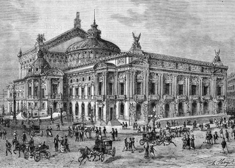Le Théâtre de l'Opéra, voulu par Napoléon III, a été construit, de 1861 à 1875, par l'architecte Charles Garnier (1825-1898) Il a été commencé pendant le Second Empire, c'est le monument le plus important et le plus réussi de ceux édifiés à cette époque, devant lui se trouvant la place de l'Opéra .