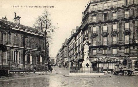Au centre de la place Saint Georges se dresse le monument de Gavarni depuis 1911, œuvre du sculpteur Denys Puech (1854 - 1942), il comprend le buste du célèbre caricaturiste et dessinateur de la monarchie de Juillet Paul Gavarni, placé sur une colonne où sont évoqués les personnages familiers au crayon de l'artiste, ainsi un Pierrot de carnaval et une lorette, alors figure typique du quartier. Il s'agit du seul monument parisien évoquant directement le Carnaval de Paris.