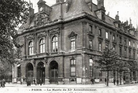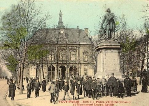 La mairie du XIe arrondissement, située de 1860 à 1865 rue Keller, a été construite ici en 1862, par Bailly. Elle fut inaugurée en septembre 1865, et utilisée par la Commune de Paris après l’incendie de l'Hôtel de ville. Sous le second Empire est installée la statue du Prince Eugène-Napoléon, oncle de Napoléon III, réalisée par le sculpteur Augustin Dumont, suite à la défaite de la guerre de 1870, la statue est enlevée et remplacée en octobre de cette même année par une réplique du Voltaire assis de Jean-Antoine Houdon .La place prend alors le nom de place Voltaire. En 1885 la statue est enlevée remplacée par celle d'Alexandre Ledru-Rollin réalisée par Clément Steiner a été fondue durant l'Occupation en 1942, le socle e été enlevé en 1980. A cet emplacement se dresse une statue de Léon Blum réalisée par Philippe Garel en 1985