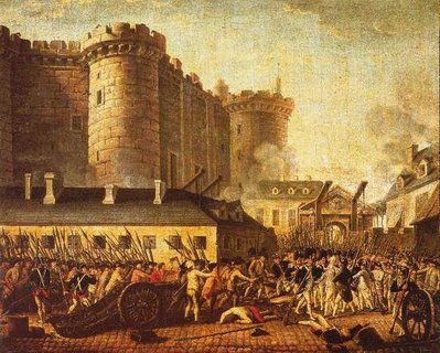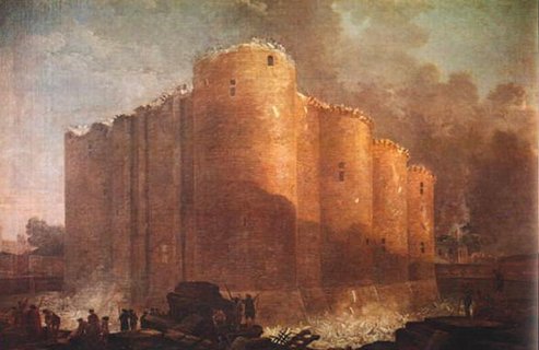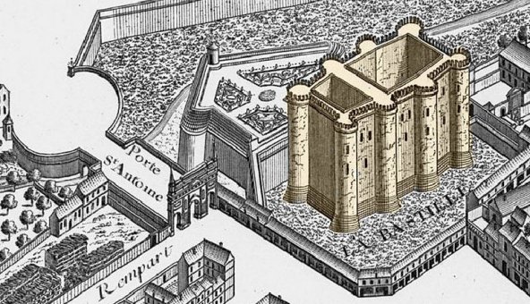 Elles étaient reliées entre elles par des murs de neuf pieds d’épaisseur. Un large fossé, que l’eau de la Seine remplissait en hiver, entourait la forteresse. Ce n’est qu’à partir du XVIIème siècle sous Richelieu qu’elle devint prison d’état. Des aristocrates tels que le marquis de Sade et des écrivains comme Voltaire y séjournèrent. Le plus célèbre prisonnier fut le masque de fer. Qui était d'après Voltaire un frère jumeau de Louis XIV. Lorsque débute la Révolution, la Bastille n’est plus la forteresse terrifiante de jadis, mais reste le symbole de l’arbitraire royal. C’est ce symbole que le peuple de Paris allait abattre ce 14 juillet 1789 ! Le 13 juillet une milice forte de 48 000 hommes se crée, le tocsin sonne. La Bastille est prise le 14 juillet 1789. Dés le 16 Juillet la démolition de la Bastille est ordonnée. Les pierres ont servi à construire le pont de la Concorde. Avec les pierres restantes, le " patriote Palloy " fit aussi des modèles réduits de la forteresse, des encriers, des souvenirs qu’il vendit en France. Le 16 juin 1792, l’Assemblée Législative décrète que sur le terrain de la prison sera établi un espace appelé Place de la liberté, et qu’au milieu de cette place serait érigée une colonne surmontée de la statue de la Liberté.