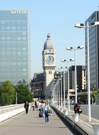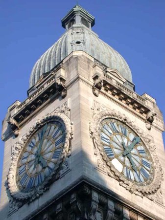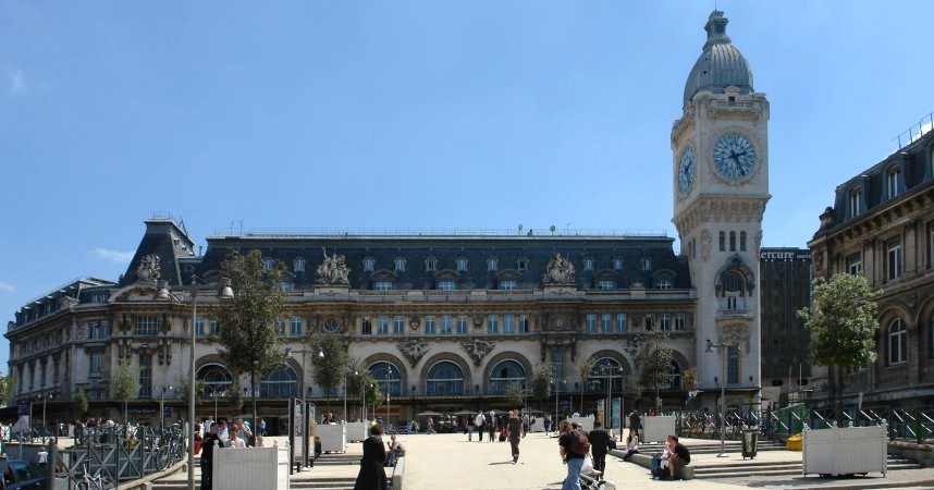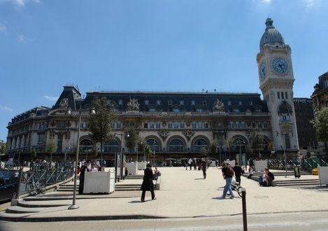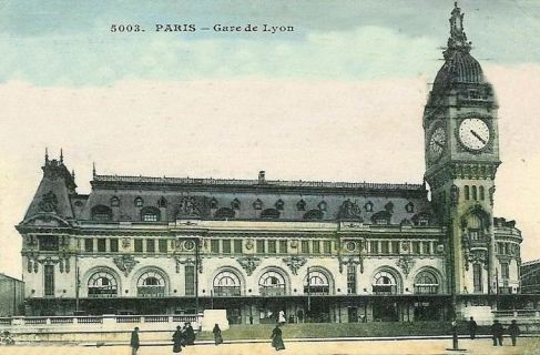 La gare de Lyon actuelle a été construite en 1899, pour l'Exposition Universelle de 1900, par l'architecte Marius Toudoire, Elle, possède un beffroi de 64 m de haut comportant 4 cadrans de 6 m de diamètre construite dans le style académique de 1900. La première gare l'"Embarcadère de chemin de fer de Paris à Montereau" réalisée par François-Alexis Cendrier date de 1847, ce même architecte reconstruit une nouvelle gare en 1855.
