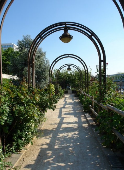 Le jardin de l'Arsenal est situé 53 boulevard de la Bastille à la place de la Bastille, en bordure ouest du bassin de l’Arsenal . Le jardin en terrasse suit le cours de l'eau, il alterne espaces ombragés, pergolas et espaces ensoleillés. Il comporte de nombreuses plantes grimpantes : la rose, le chèvrefeuille, la clématite, le kiwi ou les bignones, appelées aussi trompette de Virginie, aux belles teintes orangées. La statue en bronze d'Henry Arnold (1983) est entourée de pergolas
