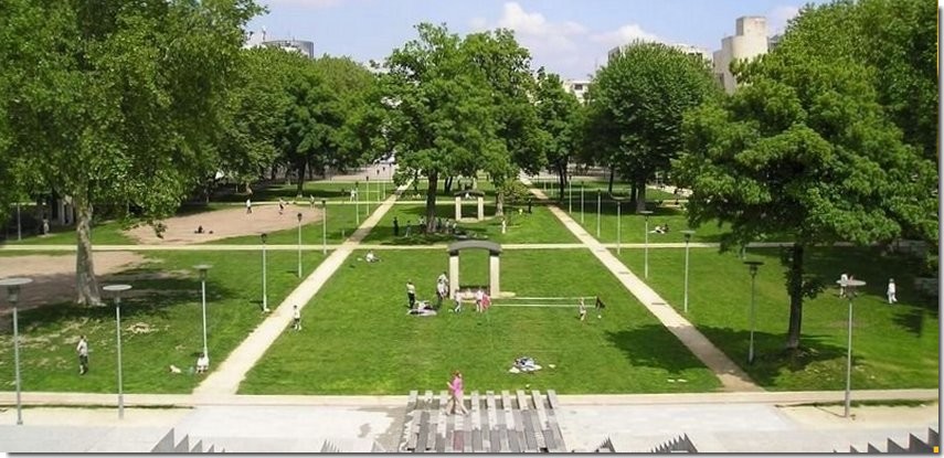 Les trois jardins Le parc est composé de trois jardins conçus entre 1993 et 1997 par les architectes Bernard Huet, Madeleine Ferrand, Jean-Pierre Feugas, Bernard Leroy, et les paysagistes Ian Le Caisne, Philippe Raguin.