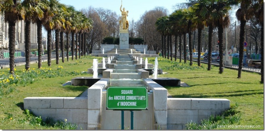 Le square des Anciens Combattants d'Indochine, crée en 1987, qui rend hommage aux combattants de la guerre d'Indochine (1946-1954) abrite une fontaine comportant un bassin à plusieurs niveaux dominé par une statue dorée d'une dizaine de mètres de hauteur. La statue de la guerrière Athéna en bronze doré a été réalisée par Léon-Ernest Drivier (1878-1951), un élève de Auguste Rodin en 1935, Elle représente « La France apportant la paix et la prospérité aux colonies »