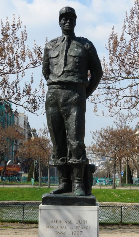 Officier durant la Première Guerre mondiale Alphonse Juin, exerçant notamment lors de la bataille du Chemin des Dames. Lors du conflit 39-45 il est propulsé commandant dans le nord du pays. Emprisonné par les allemands Pétain obtient sa libération. En novembre 1942, il rejoint les Alliés lorsque ceux-ci débarquent et il s'oppose alors aux Allemands. Alphonse Juin va mener la « bataille d'Italie » pour permettre aux Alliés de reprendre le territoire de la France