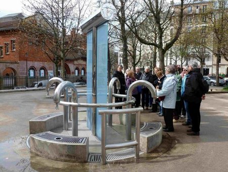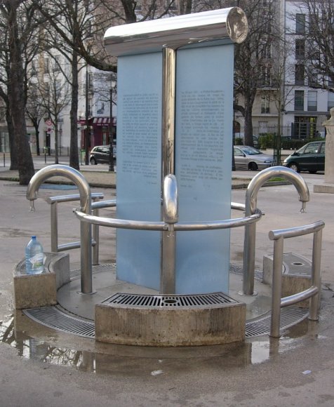 La fontaine, installée en 1999, est l'une des trois fontaines d'eau de source de Paris. L'eau qui y coule est une eau ferrugineuse vieille de 25 000 ans issue de la nappe fossile de l'Albien. Ce puit artésien de la Butte-aux-Cailles débuta en 1863 mais ne verra l'eau jaillir qu'en 1904 après avoir creusé à une profondeur de 582 m. L'eau sortant à 28°C, le puits servit à alimenter la piscine de la Butte-aux-Cailles ouverte en 1924. C'est au XIXe siècle que l'on commencera à forer les puits artésiens, le premier puits artésien est celui de Grenelle (15e) aujourd'hui sans activité. Deux autres sont toujours en activité dans le square Lamartine (16e) et le square de la Madone (18e).