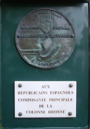 Une plaque commémorative sur les grilles place Pinel rend hommage aux Républicains espagnols de la colonne Dronne qui furent les premiers à entrer dans Paris pour la libérer.