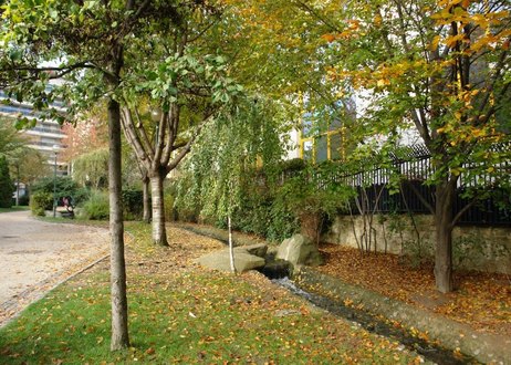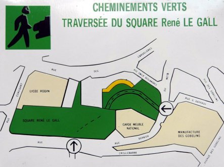 Le square René-Le Gall ou jardin des Gobelins d’une superficie de 32 213 m² a été construit en 1938 sur les anciennes dépendances du Mobilier national et de la Manufacture des Gobelins. Ce square, construit dans un style néoclassique en 1938 par l'architecte Jean-Charles Moreux, est réalisé à l'emplacement d'une petite île, l'île aux Singes, formée par les bras de la Bièvre qui a été couverte. Son entrée principale se situe sur la place de la Bergère-d'Ivry, les entrées annexes sur la rue Croulebarbe, la rue Berbier-du-Mets, la rue Émile-Deslandres et la rue des Cordelières.