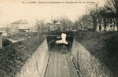 La ligne de la Petite Ceinture de Paris comportait deux gares de voyageurs dans la traversée du 14e arrondissement. La gare de Montrouge Ceinture, donnant sur l'avenue du Général Leclerc, est en cours de réhabilitation. La gare Ouest Ceinture avec son entrée sur la rue Vercingétorix est actuellement désaffectée.