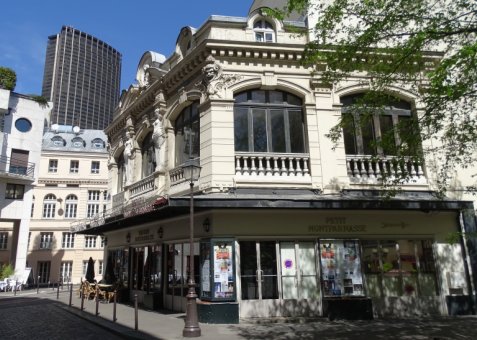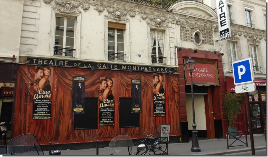 Situé 26, rue de la Gaîté, il a été fondé en 1868, le lieu devint de 1898 à 1933 un café-concert. Fragson, Mayol et Colette s'y produisirent.L’entrée au théâtre de la Gaîté- Montparnasse s'effectue par une étroite entrée surmontée d'un fronton cintré. Au-dessus du niveau supérieur qui s'ouvre par six baies ornées de clefs en forme de masques, court une guirlande végétale. A l'intérieur, la salle de forme elliptique, qui permet d'accueillir 411 spectateurs, a été aménagée en 1873. En 1945, il devint une scène d'art dramatique, avec comme auteurs comme Allais, Courteline, Prévert, Cocteau et Audiberti.