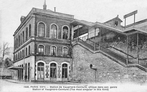 La ligne de la Petite ceinture de Paris comportait, dans la traversée du 15e arrondissement, deux gares voyageurs et une gare marchandises. Les gares de Grenelle voyageurs et marchandises ont été détruites, a l'emplacement de cette dernière a été construit l'hôpital européen Georges-Pompidou et le siège de France Télévision. La gare de Vaugirard-Ceinture existe toujours, elle est occupé par une société privée.