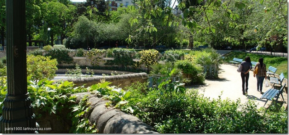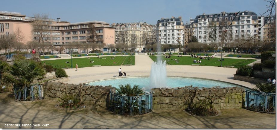 Autour du square a été construit autour de nombreux immeubles de style 1930 et le lycée Camille Sée. Le jardin comporte plusieurs sculptures dans le jardin: deux Oursons de Victor Reter (1928), Chien de René Paris (1928) et un bas-relief réalisé par Auguste Guénot en 1939. Les usines à gaz étaient alimentées en charbon par des tombereaux venant de la gare et le port de Grenelle. Elles alimentaient en gaz les premiers réverbères de la rive gauche. Une âcre odeur de soufre et d’ammoniaque empestait le quartier. D'autres quartiers de Paris abritaient des usine à gaz comme le quartier de la Villette 19e ou sur l'actuel parc de Choisy 13e . Autre quartier pollué par les cheminées crachant des fumées provenant du charbon , l'usine de métropolitain quai de la Rapée qui fournissait le courant électrique pour les lignes de métro nouvellement mises en service