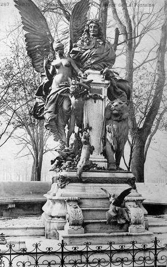 Les bronzes du Monument à La Fontaine qui avait été réalisé en 1891 par le sculpteur Achille Dumilâtre (1844-1923) ont été fondues sous l'occupation. Sur les soubassements de l'architecte Frantz Jourdain conservés ont été placé en 1984 une nouvelle statue réalisée par Charles Corréia (1830-1880) La statue en Bronze l'Amour fugitif (1877) de Ernest Damé (1845-1920) a également disparue