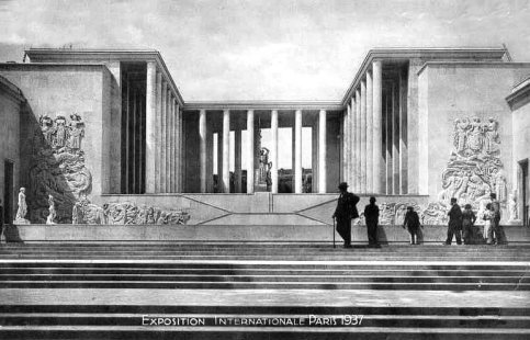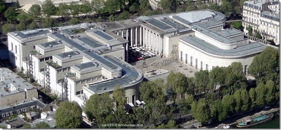 Les bas reliefs extérieurs sont dû à Alfred Janniot auteur également de la façade de l'actuelle Cité nationale de l'histoire de l'immigration de la porte Dorée, bâtiment construit pour l'Exposition Coloniale Internationale de 1931 . C'est l'un des trois édifices permanents construit pour l'Exposition Internationale de 1937 Le palais de Tokyo a été construit à l'emplacement de la célèbre Manufacture de la Savonnerie, réorganisée par Colbert, de l'ambassade de Pologne en mars 1935 (celle-ci est démolie et l'Hôtel de Sagan acheté par l'État français est offert à la Pologne en compensation) et de la Manutention militaire. Sa construction est promue par Louis Hautecœur, conservateur du musée des Artistes vivants installé, à l'époque, dans l'Orangerie du Luxembourg dans le jardin du Luxembourg. Le projet conçu par les architectes Dondel, Aubert, Viard et Dastugue comprend deux ailes presque symétriques. Le bâtiment comprend deux musées d'art moderne: celui de l'Etat, à l'ouest et celui de la Ville, à l'est. Une salle de conférences, commune aux deux musées, est édifiée et aménagée sous le parvis. Les fondations en béton seront remplies de briques creuses elles-mêmes recouvertes de dalles de pierre. Les façades sont construites en dalles de pierre. Le Musée d’art moderne de la ville de Paris occupe la moitié est du Palais de Tokyo, il a été inauguré officiellement en 1961. On y trouve des courants artistiques français (et plus récemment européens) du XXème siècle, notamment La Fée électricité de Dufy, La Danse de Matisse des peintres fauves (Derain, Vlaminck) à la création contemporaine en passant par le Cubisme (Braque, Picasso), l'Ecole de Paris, Abstraction-Création, l'Abstraction Lyrique, le Nouveau Réalisme, Support-Surface, l'Arte Povera, l'Art conceptuel. A l'extérieur une haute statue, réalisée par Antoine Bourdelle, symbolise la France éternelle. Elle est associée à une plaque commémorative, apposée en 1948, dédiée à la mémoire des combattants de la France libre qui ont répondu à l'appel du général de Gaulle, le 18 juin 1940. Le miroir d'eau et les fontaines furent réalisées par Félix Févola. A l'origine, le miroir d'eau était entouré de douze figures de femmes dues à des artistes connus, constituant un musée de sculptures en plein air. La passerrelle Debilly située en face conduit au nouveau musée du quai Branly , le musée des Art Premiers.
