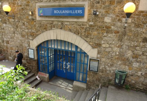 La gare de Boulainvilliers est située entre la gare de l'avenue Henri Martin au nord et la gare de l'avenue du Président-Kennedy au sud