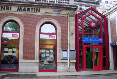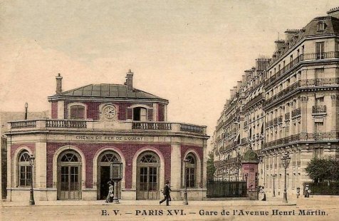 La gare de l'avenue Henri Martin, construite à cheval sur les voies, a été ouverte en 1878 sur la ligne de la Petite-Ceinture, à l'occasion de l'Exposition universelle de 1878. Suite à la fermeture de la ligne, la gare, en sous sol, est intégrée dans le réseau REC en 1985. Le bâtiment en surface est transformé en restaurent comme d'autres gare sur la ligne.
