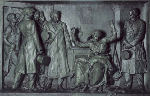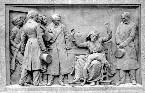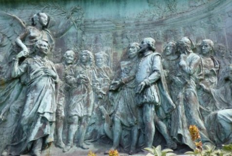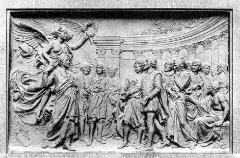 Le monument était composé de plusieurs personnages et quatre bas-reliefs en bronze, les reliefs furent sauvés, on peut en retrouver un au musée des beaux-arts et de la dentelle de Calais et les trois autres à Veules-les-Roses (Seine Maritime)