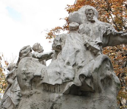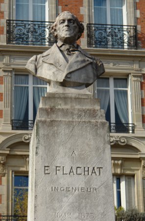 Le monument à l'ingénieur Eugène Flachat (1802-1873) situé au carrefour Perrière-Verniquet, en bordure du boulevard Pereire, a été réalisé en 1897 par Alfred Boucher (1850-1934)