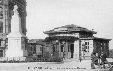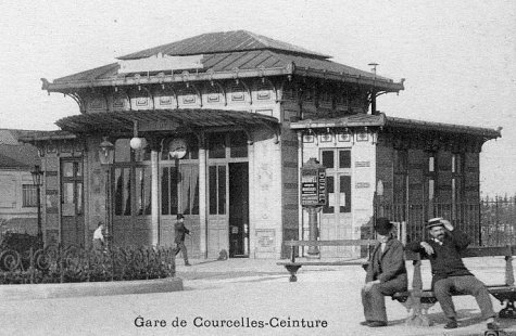 La gare de Courcelles-Ceinture ouverte, en 1869, sur la ligne de la Petite-Ceinture a été réalisée par l'architecte Juste Lisch (1828-1910). Après être fermée en 1934, suite à l'arrêt de la Petite-Ceinture la gare est détruite dans les années 1950. La tranchée est couverte pour la construction d’immeubles d’habitations. En sous sol, deux voies sont préservées le long de la rue Philibert Delorme afin de faire passer la ligne du RER C ouverte en 1988.