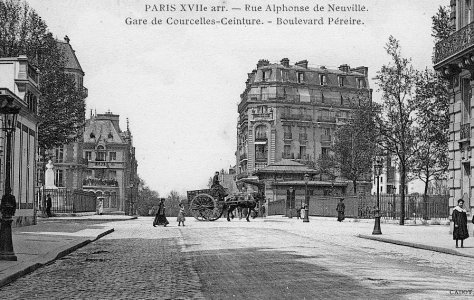 Au Carrefour Pereire-Verniquet se dresse toujours un monument à Eugène Flachat (1802-1873) réalisé par Alfred Boucher en 1897. Flachat travailla comme ingénieur en chef de la Compagnie du chemin de fer de Paris à Saint-Germain propriété des frères Pereire. La gare de Courcelles-Ceinture était située entre la gare Pereire-Levallois (anciennement Courcelles - Levallois) au sud et la gare de l'avenue de Clichy au nord (18e arr.).