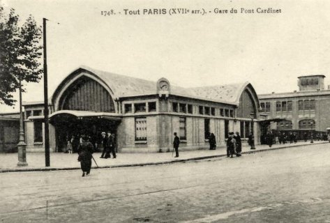 La gare de Pont Cardinet construite en 1922 sur la ligne Pont de Cardinet - Auteuil et reliée à la gare Saint Lazare . Située de l'autre côté du pont de la rue Cardinet elle remplace la gare des Batignolles de 1854 reliée à la ligne de la Petite Ceinture . Elle a été édifiée à l'angle du boulevard Pereire sud et du pont Cardinet.
