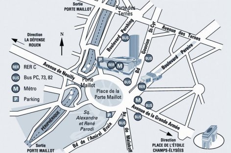 La Porte Maillot est située à l'ouest de Paris à l'extrémité de l'avenue de la Grande Armée non loin du Bois de Boulogne en bordure du périphérique .Elle est située dans l'axe Palais du Louvre - Les Champs Elysées - La Défense