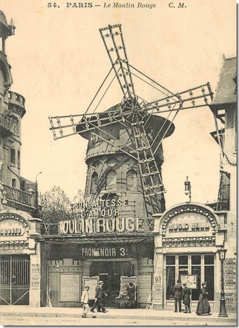 Le Moulin Rouge situé boulevard de Clichy au pied de la Butte Montmartre ouvre ses portes le 6 octobre 1889, leurs créateurs Joseph Oller et Charles Zidler ont surnommé leur établissement "le premier Palais des Femmes". Immortalisé par le peintre Henri de Toulouse-Lautrec, le Moulin Rouge est connu dans le monde entier pour son french-cancan.