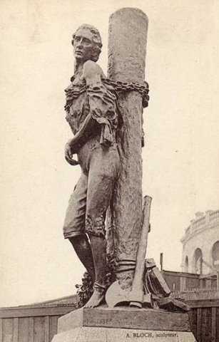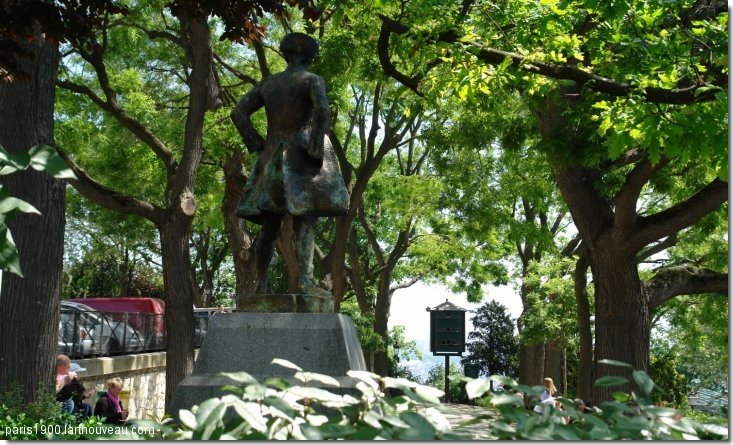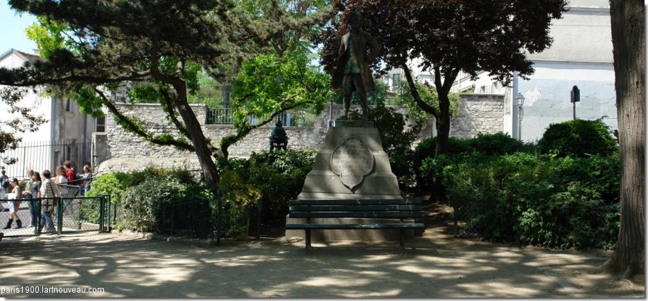 Cette est déplacée en 1926 dans le square proche, place moins dérangeante pour les croyants. Fondue en 1941 sous Pétain, laissant le socle vide, une nouvelle statue réalisée par Emanuel Ball dans le square Nadar à Montmartre: son inauguration a eu lieu le 24 février 2001