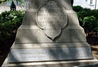 Le square Nadar se trouve sur la Butte Montmartre au pied de la basilique de Sacré Chœur. En 1766, François Jean de La Barre est décapité et brûlé pour ne pas avoir salué une procession religieuse à Abbeville. Une statue à son effigie, réalisée par Armand Bloch (1866-1933) est érigée devant l'église du Sacré Cœur à Paris en 1905.