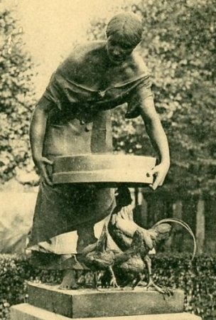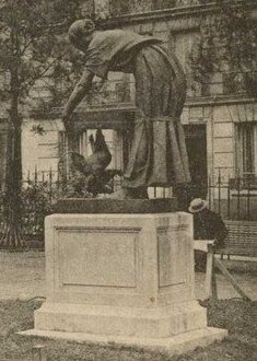 Le square abritais une statue de scène paysanne La Vanneuse du sculpteur Théophile Barrau (1848-1913) qui a été fondue durant l'occupation en 1942. Au pied de la femme se trouvent des gallinacées. Cette sculpture réalisée en 1885 a été acquise, ainsi que le modèle en plâtre, par la Ville de Paris au salon de 1887. Sur la carte postale avait été indiqué par erreur La Semeuse