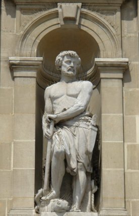 La silhouette et le style du bâtiment font référence aux grandes demeures de la première moitié du XVIIe siècle, alliant la pierre et la brique. Seule l'avancée à colonnes et arcades au rez-de-chaussée distingue l'édifice public. Sur la façade, des statues, hautes de 2 m, représentent deux allégories l'Approvisionnement en eau et l'Approvisionnement en bétail.