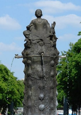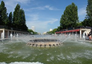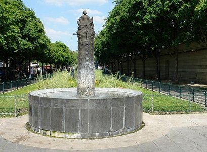 Sur des murs de chaque côté sont indiquées les noms des anciens octrois du mur des Fermiers Généraux dont ne subsistes que quatre réalisées par l'architecte Claude Nicolas Ledoux dont la rotonde de la Villette sur la place (elle a été complètement réaménagée fin 2006) La place de la Bataille de Stalingrad abrite deux fontaines: En son centre une grand bassin rectangulaire avec de nombreux jets d'eau Vers l'ouest la fontaine Ephrésienne réalisée en 1989 par le sculpteur Georges Jeanclos comportant un haut bassin circulaire avec en son centre un édicule en bronze, la figure d'Artémis est entourée de quatre jets d'eau.