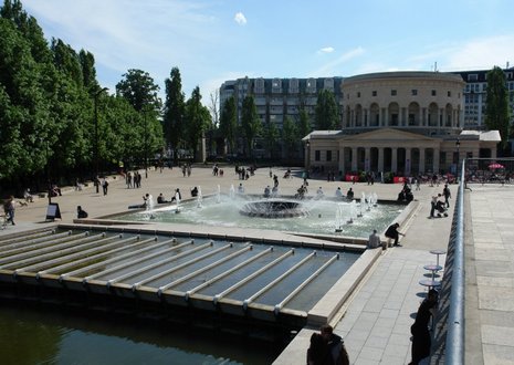 La place de la Bataille de Stalingrad ferme le bassin de la Villette en son sud, une écluse permet le passage vers le canal Saint-Martin qui se termine dans le bassin de l'Arsenal. La ligne métro aérien ligne n°2 Nation-Porte Dauphine la traverse, Sur la place se trouvent la Rotonde de la Villette, une nouvelle fontaine et le jardin avec une fontaine en bronze.