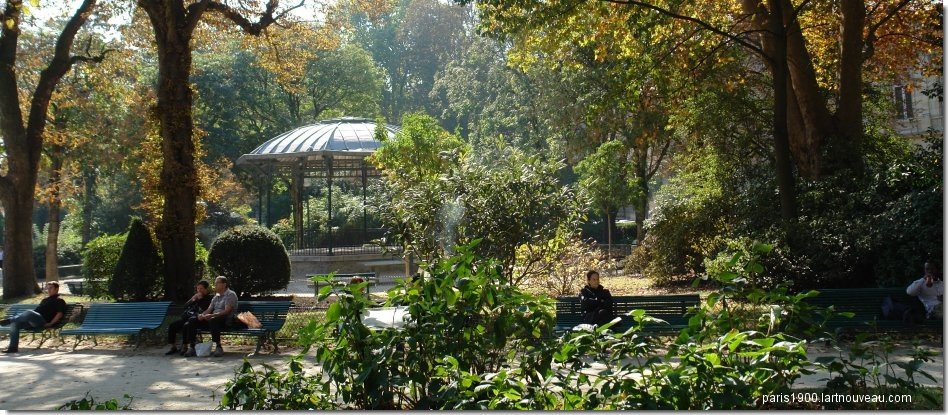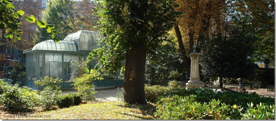 Le square abrite un kiosque à musique, des serres (réplique miniaturisée des grandes serres du Second Empire), et une statue de Léon Gambetta qui faisait partie du monument à Léon Gambetta réalisé par Jean-Paul Augé (1837-1916) et l'architecte Louis-Charles Boileau. Le socle comporte deux soldats représentés dans un foisonnement d’allégories républicaines. La statue faisait partie d’un groupe monumental érigé sous la IIIe République au Palais du Louvre et inauguré au Jardin des Tuileries le 14 juillet 1888. Ce monument a ensuite été élevé, dans la place du Carrousel avant d’être démantelé. arrondissement à l’occasion du centenaire de la disparition de Léon Gambetta, en novembre 1982. Des statues en bronze placées dans les années 1900 ont été fondues durant l'occupation dans les années1900. Le buste du Dr Louis Augustin Métivier de Mathurin Moreau (1904) dont le socle subsiste toujours, L'Aveugle et le Paralytique (1883) de Gustave Michel et Le Datura d'Hippolyte Galy
