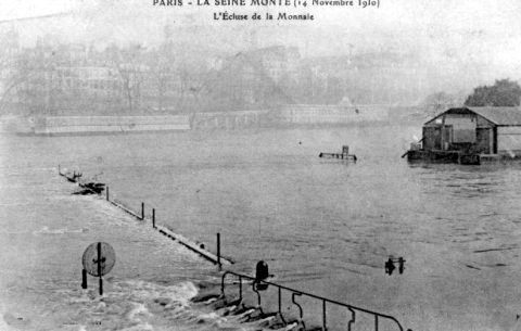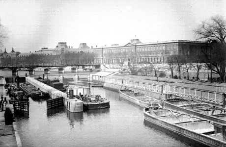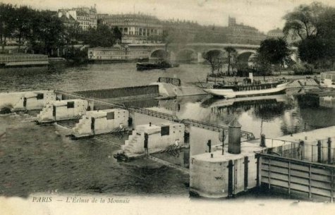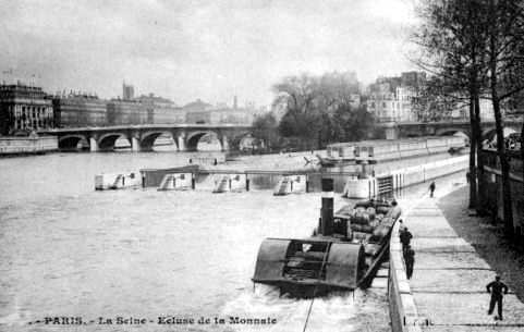 Le barrage-écluse de la Monnaie, mise en service en 1838 avait 172 mètres de long sur 11,80 mètres de large, était située en aval du pont Neuf sur le petit bras de la Seine en face de l'Hôtel des Monnaies. En relevant le plan d'eau d'un mètre, l'écluse associée permettait la navigation en toute saison. L'écluse a été désaffectée puis détruite en 1923.