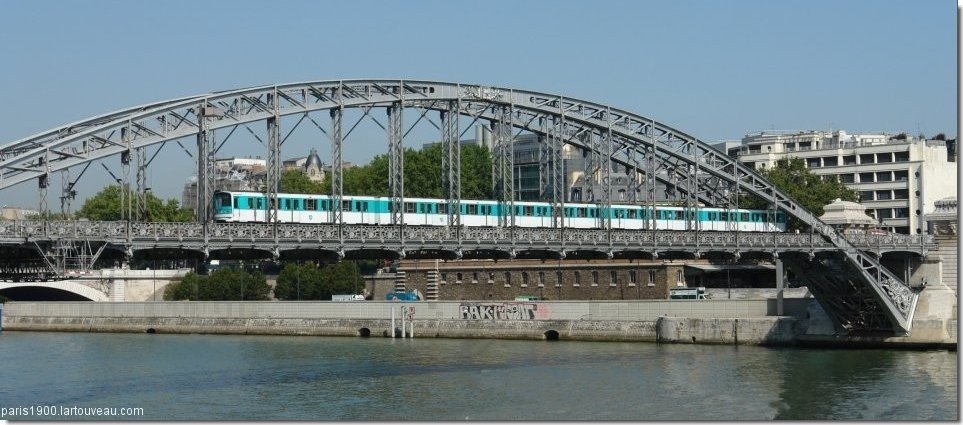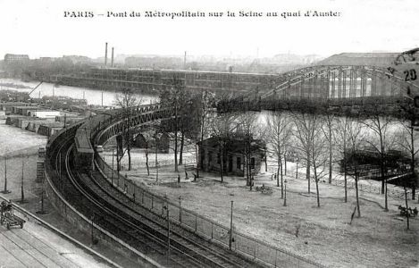 Le pont métallique du viaduc d'Austertlitz, d'une longueur de 140 m, a été construit en 1903 et 1904 par les ingénieurs Biette et Bienvenüe (architecte de la Compagnie de chemin de fer métropolitain) et l'architecte Jean-Camille Formigé.Il est réservé au passage de la ligne de métro place d'Italie-Bobigny qui sort de la gare d'Austerlitz et après avoir traversé la Seine plonge sous terre au quai de la Râpée après un virage à 90°.