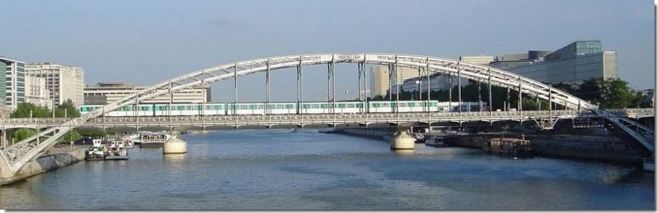 Ce viaduc qui ne devait pas avoir d'appui dans la Seine pour ne pas gêner la navigation déjà perturbée par le pont d'Austerlitz voisin , prend la forme d'une très longue passerelle à deux arcs, suspendue par des poutrelles à treillis. La passerelle est située en amont du pont pont d'Austerlitz et en aval du pont Charles de Gaulle